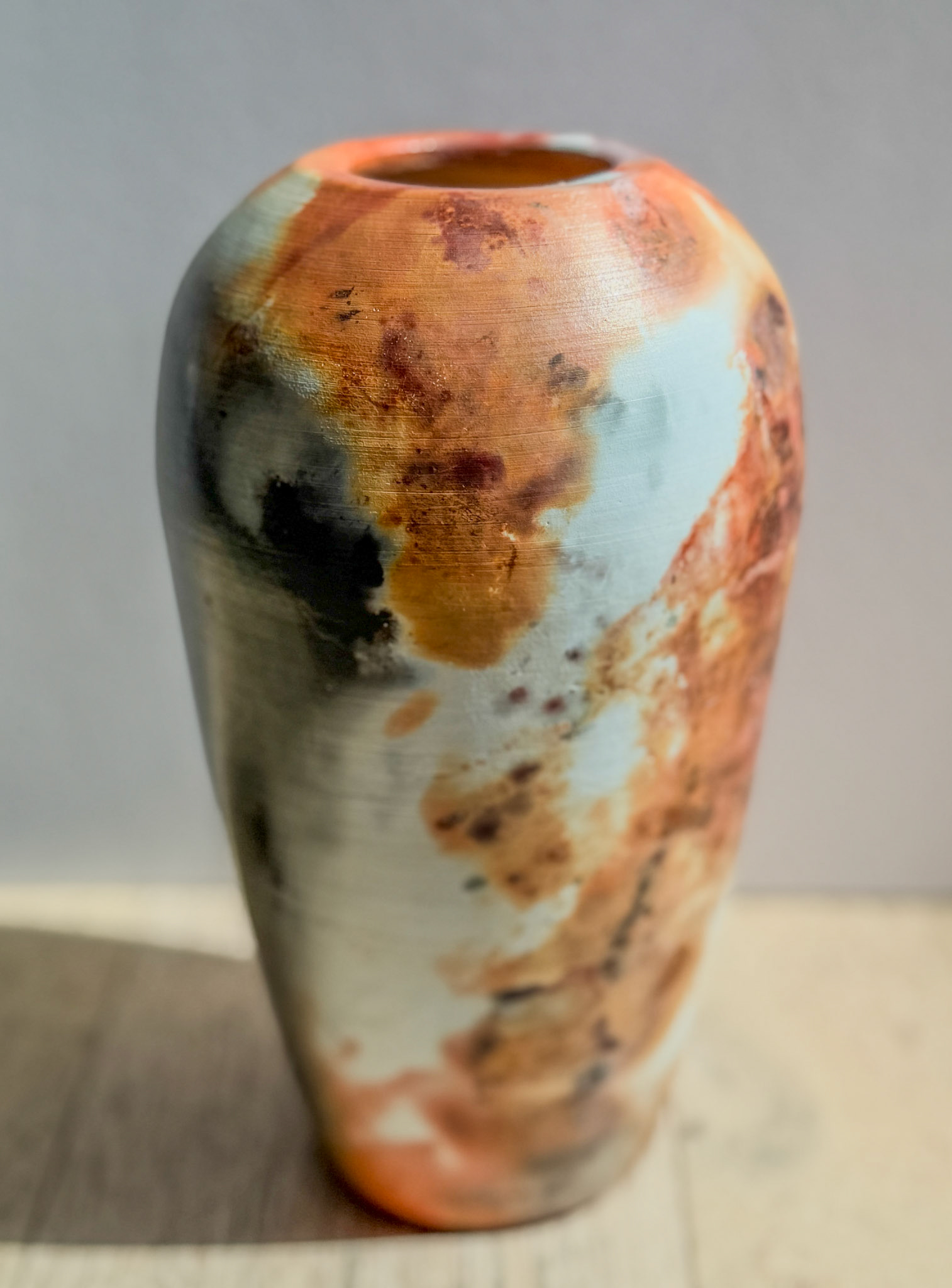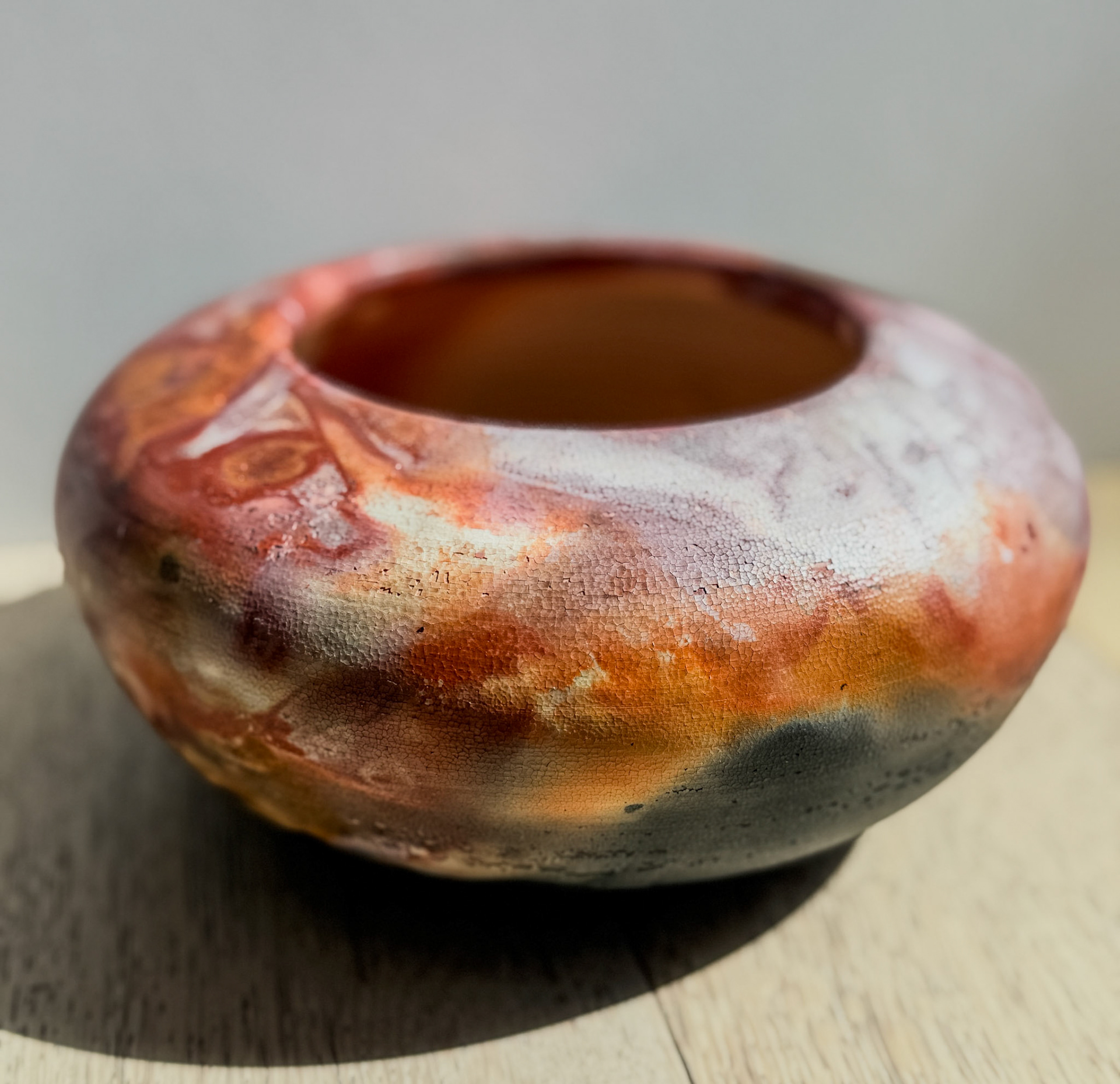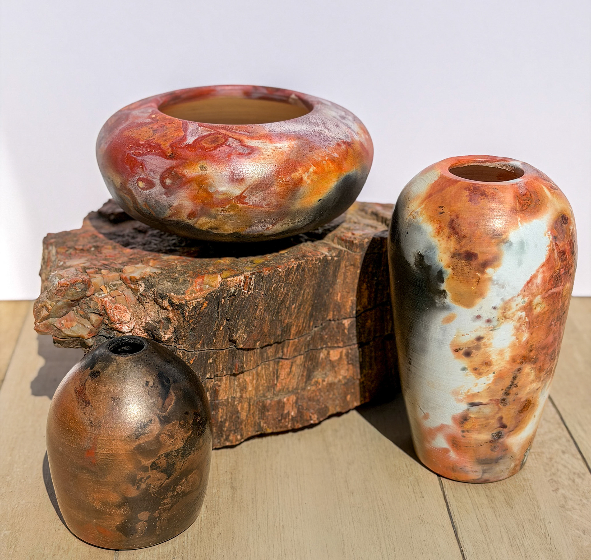 Raku is about interruption—pulling the piece from the fire mid-story and letting air, smoke, and chance finish it. Pit firing is not about control at all—it’s about surrendering the work to fire, earth, and atmosphere, and accepting whatever story they leave behind.